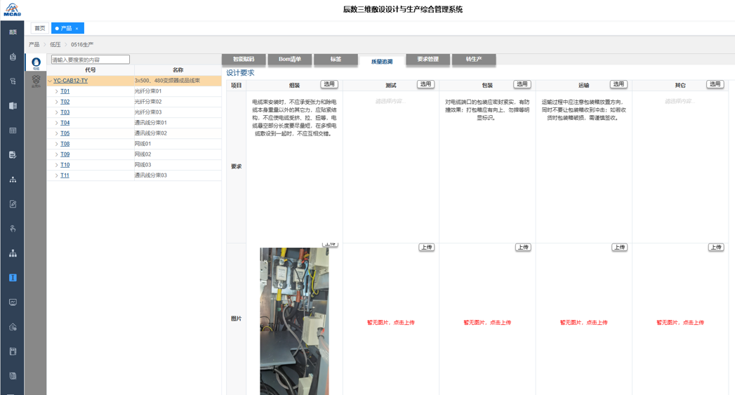电气系统宏观设计由电气原理系统,布线系统,仿真系统,工艺系统,生成加工系统,电子化售后维修等部分组成。三维线束设计在线缆类型上分低频线束 、高频线束、半钢线束、光纤、动力线、母线等;在连接类型上分针到针连接、端到端连接、混合连接等;线型更是多种多样。在应用场景上主要分总体整机线束和单机内部线束。北辰数智公司10多年三维线束布线及软件开发经验,以应用场景中最多的总体整机线束和低频线束为架构,开发国产的三维线束设计模块。后续其他模块均可在其基础上扩展。